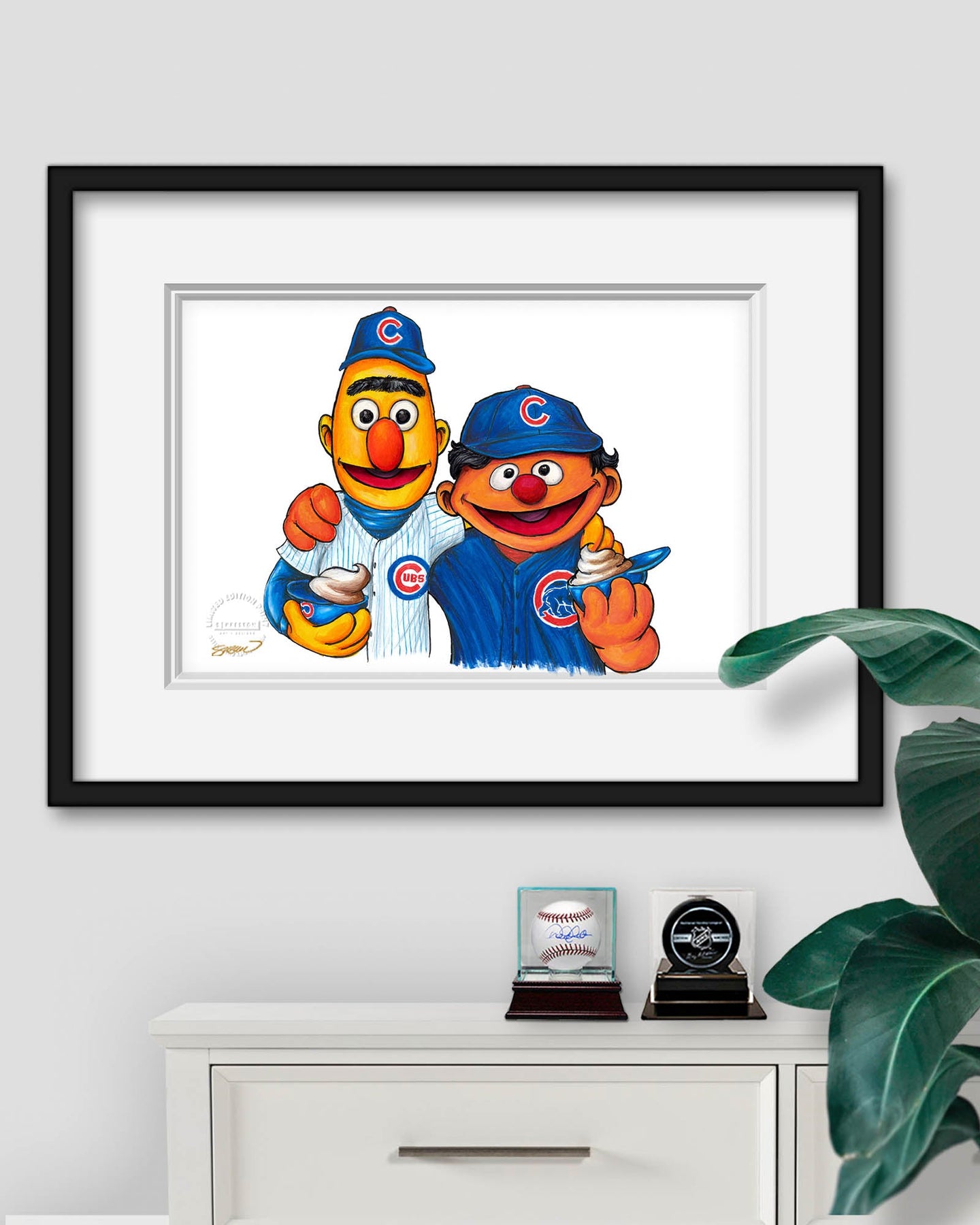 Bert and Ernie x MLB Cubs Limited Edition Art Print by S. Preston Art + Designs Art Print S. Preston Art + Designs