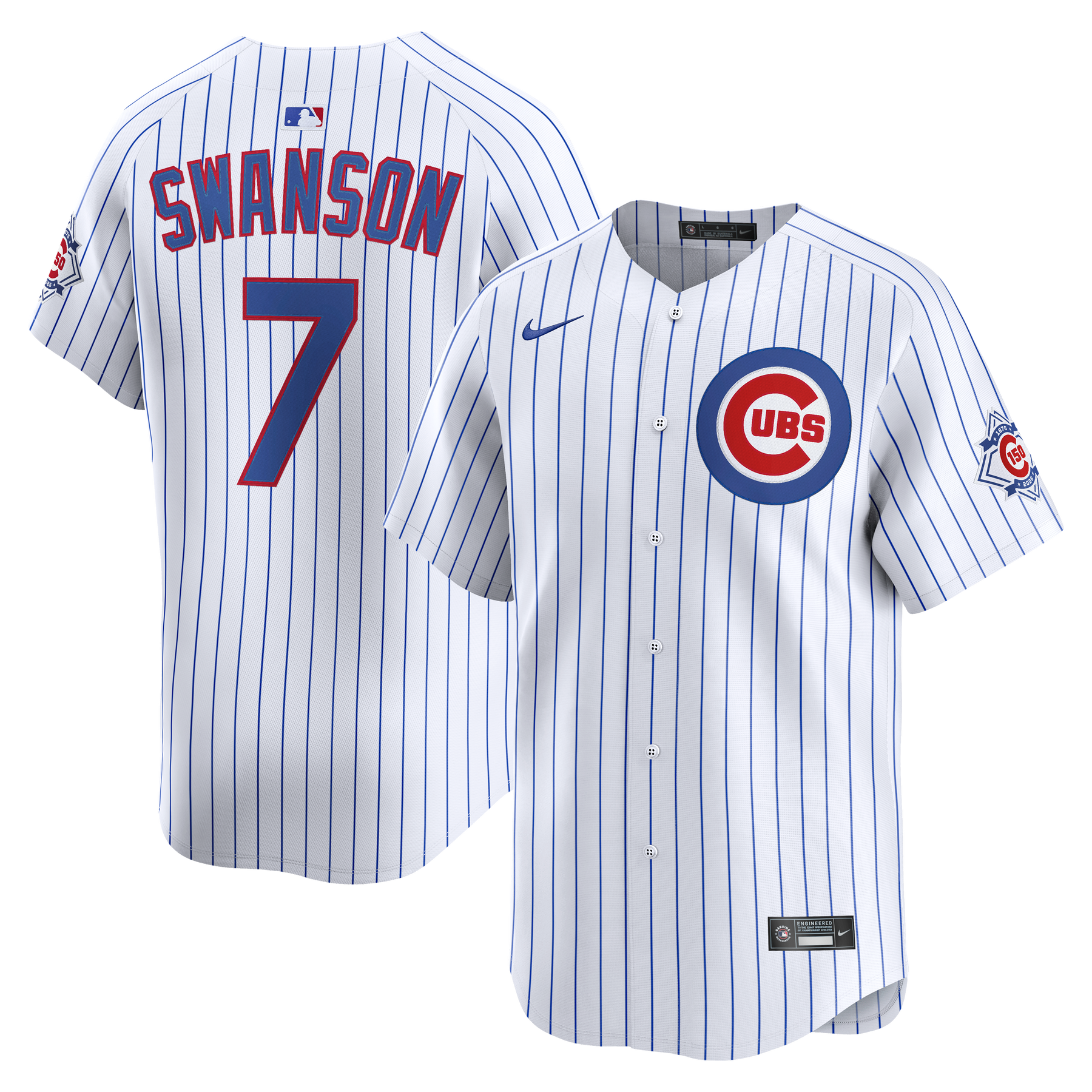 Celebrate 150 years of Cubs history in authentic style with the Nike MLB Limited Jersey. This official home white jersey features premium applique graphics including Dansby Swanson's name and number on comfortable, breathable fabric. The classic button-front design combines timeless baseball tradition with Nike's modern performance technology, perfect for commemorating this historic milestone.